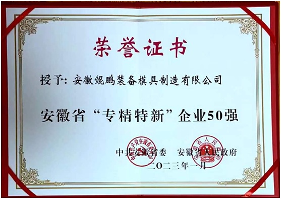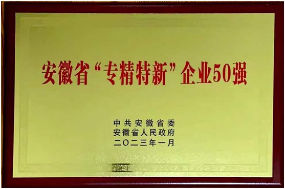 公司榮獲安徽省“專精特新”企業(yè)50強(qiáng)