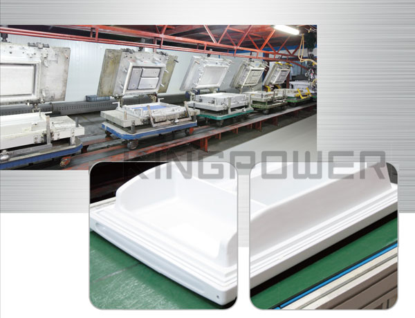 該發(fā)泡線由鏈?zhǔn)津?qū)動(dòng)系統(tǒng)、發(fā)泡夾具、烘爐、發(fā)泡機(jī)平臺(tái)、蒸汽加熱及抽風(fēng)系統(tǒng)、充注機(jī)械手、開鎖機(jī)構(gòu)、輸送臺(tái)車、開合蓋導(dǎo)軌、輔助鎖模裝置以及配套氣動(dòng)系統(tǒng)、液壓系統(tǒng)、電控系統(tǒng)等部分組成。該發(fā)泡線主要手(自)動(dòng)上箱(門)、夾具合模、手(自)動(dòng)垂直充注、循環(huán)驅(qū)動(dòng)、加熱固化循環(huán)、夾具開鎖、夾具打開、手(自)動(dòng)下箱(門)、清泡等工序組成。