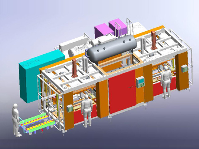 設(shè)備優(yōu)點:設(shè)備精度高,適用于IMG真空成型;采用雙成型工位,加熱工位充分利用,節(jié)能。設(shè)備投入少,適合產(chǎn)品不大的小件生產(chǎn);具有模具識別功能;可與工廠追溯系統(tǒng)聯(lián)機(jī)共享數(shù)據(jù)。