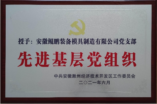 2021年6月28日,6月28日,滁州經開區(qū)召開慶祝建黨100周年暨“兩優(yōu)一先”表彰大會,我公司獲評“先進基層黨組織”。安徽鯤鵬裝備模具制造有限公司黨支部成立以來,堅持創(chuàng)先進、干實事、作先鋒,擔任了開發(fā)區(qū)模具行業(yè)黨建聯(lián)盟理事長,并積極指導和帶領公司團委、工會開展工作,獲得了一系列黨、工、團榮譽,有效促進了公司生產經營和發(fā)展
