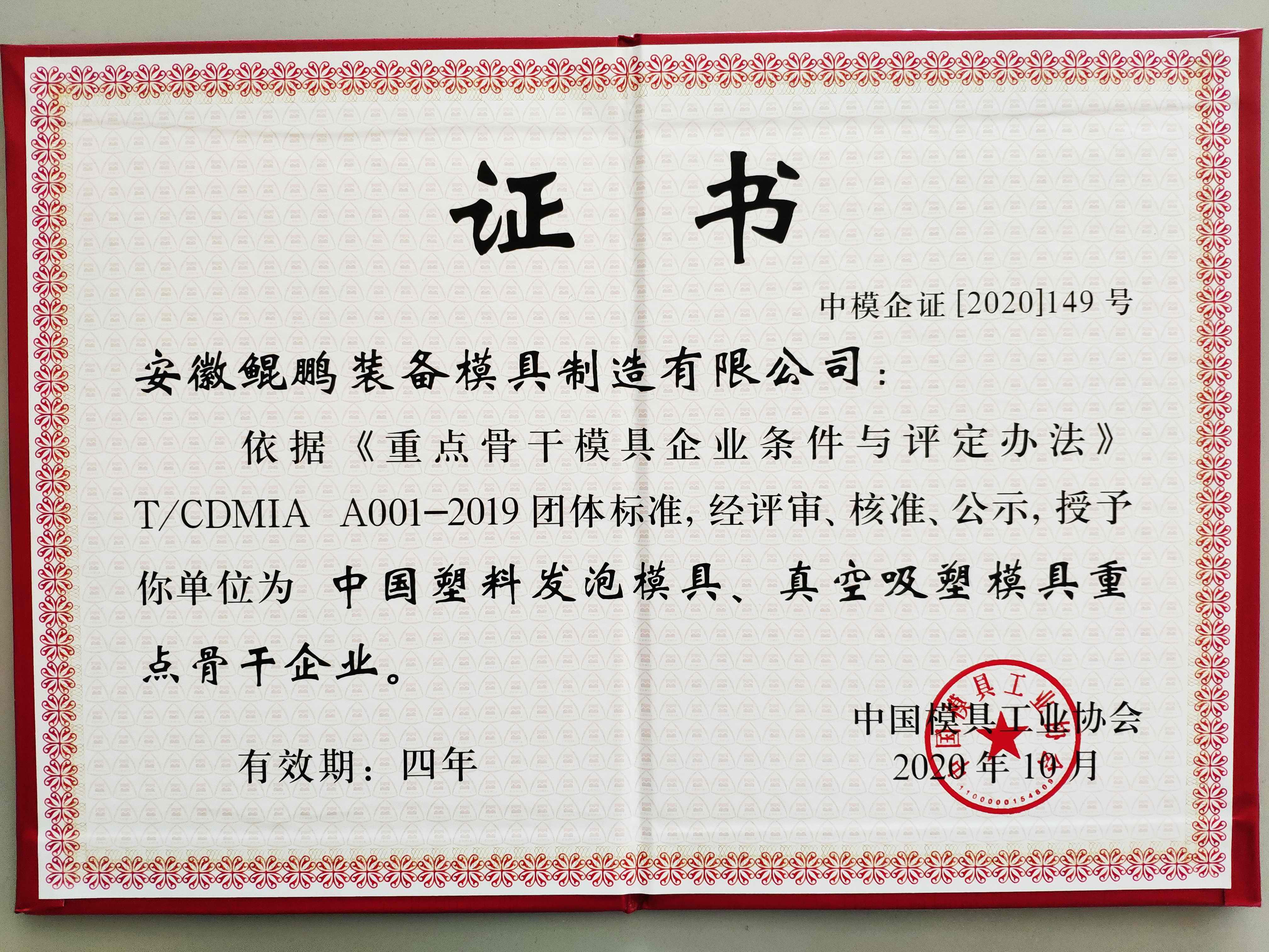 我公司再獲中國(guó)重點(diǎn)骨干模具企業(yè)稱號(hào)