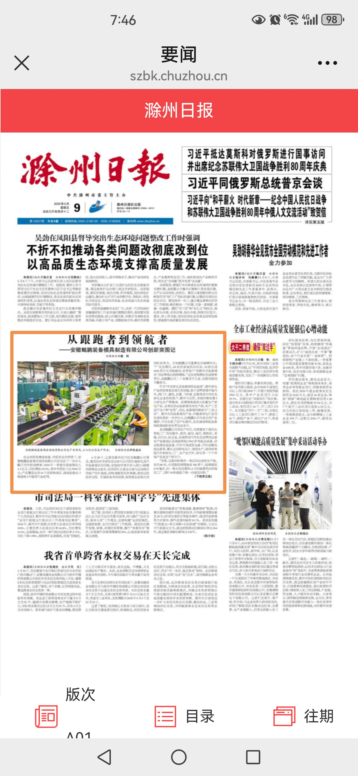 從跟跑者到領(lǐng)航者——安徽鯤鵬裝備模具制造有限公司創(chuàng)新突圍記(轉(zhuǎn)載滁州日報)